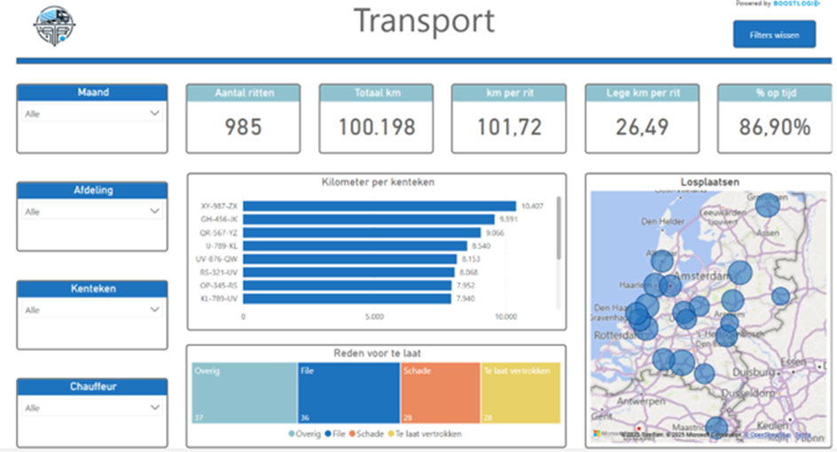 Een logistieke dienstverlener vroeg Boostlogix om ondersteuning bij het creëren van inzicht in kosten en opbrengsten per vrachtwagen. De wens: een krachtig en overzichtelijk Power BI-dashboard waarmee direct gestuurd kan worden op rendabiliteit. Boostlogix nam de volledige ontwikkeling, implementatie en optimalisatie van de rapportagestructuur op zich.